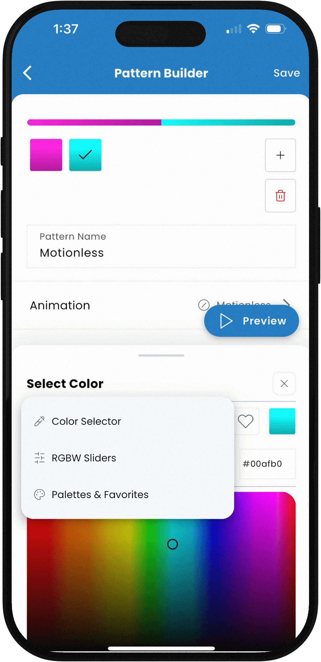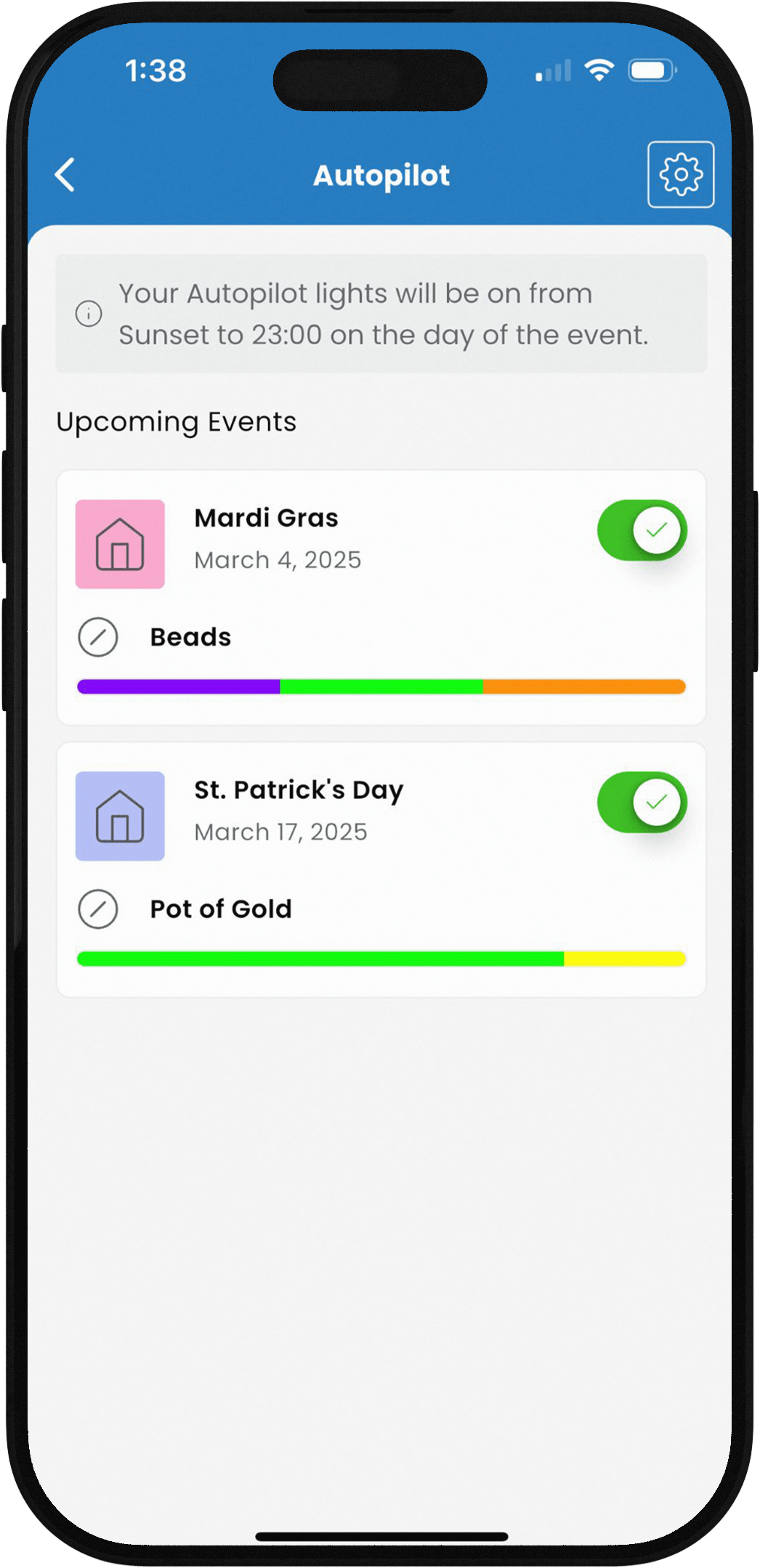 Absolutely. The Gemstone Lights app (available on iOS and Android) lets you control your lighting from anywhere — home or away. You can schedule patterns, set timers, group zones (like front, back, and garage), and even integrate with Alexa or Google Home for voice control.